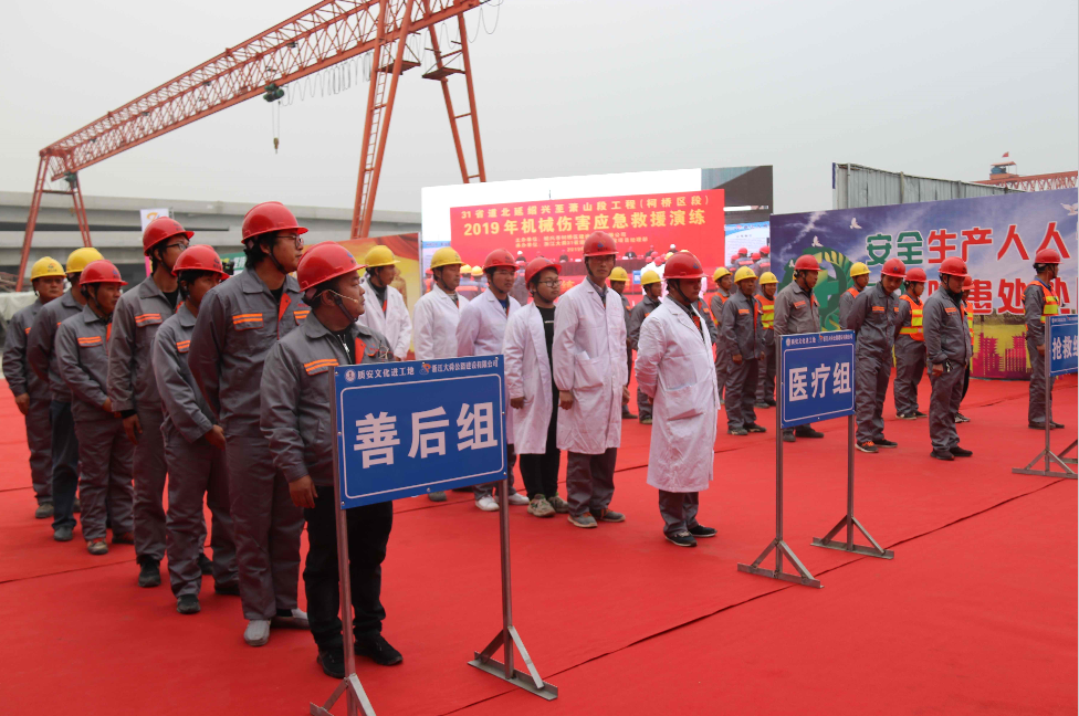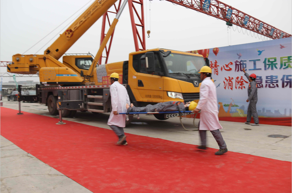 12月17日下午,交通工程機械傷害應急救援演練活動在31省道北延紹興至蕭山段工程(柯橋段)第2標預制場順利舉行,區(qū)交通運輸局、區(qū)交通質(zhì)監(jiān)站、建設集團相關部室等代表參加觀摩指導。此次演練旨在進一步提高參建人員安全防范意識、應急處置能力以及團隊協(xié)作凝聚力,檢驗應急預案的實用性和可操作性,全面提升應對突發(fā)安全事故的現(xiàn)場處置能力。
