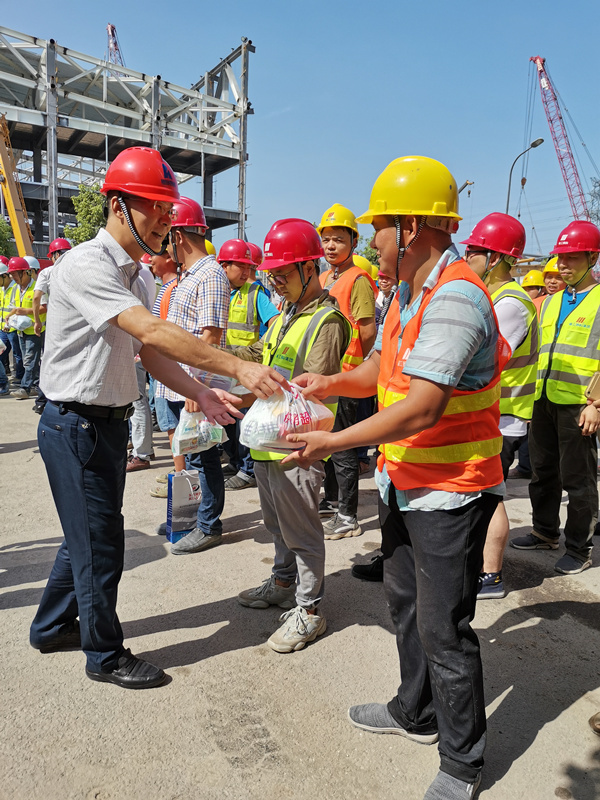 盛夏,驕陽似火,酷暑難耐。7月30日上午,集團(tuán)董事長滕建平、總經(jīng)理朱志康率隊(duì)前往建筑工地,向高溫天氣下默默堅(jiān)守一線的建設(shè)者表示問候并送去防暑降溫物品。集團(tuán)副總經(jīng)理茹建冬、舒亞明等有關(guān)人員陪同慰問。