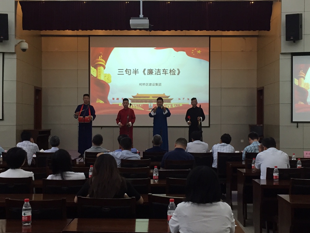 區(qū)建設集團推選優(yōu)秀作品--區(qū)車輛檢測中心節(jié)目“三句半《廉潔車檢》”參賽,四位同志的精彩誦講獲得了現(xiàn)場評委和觀眾的陣陣掌聲。