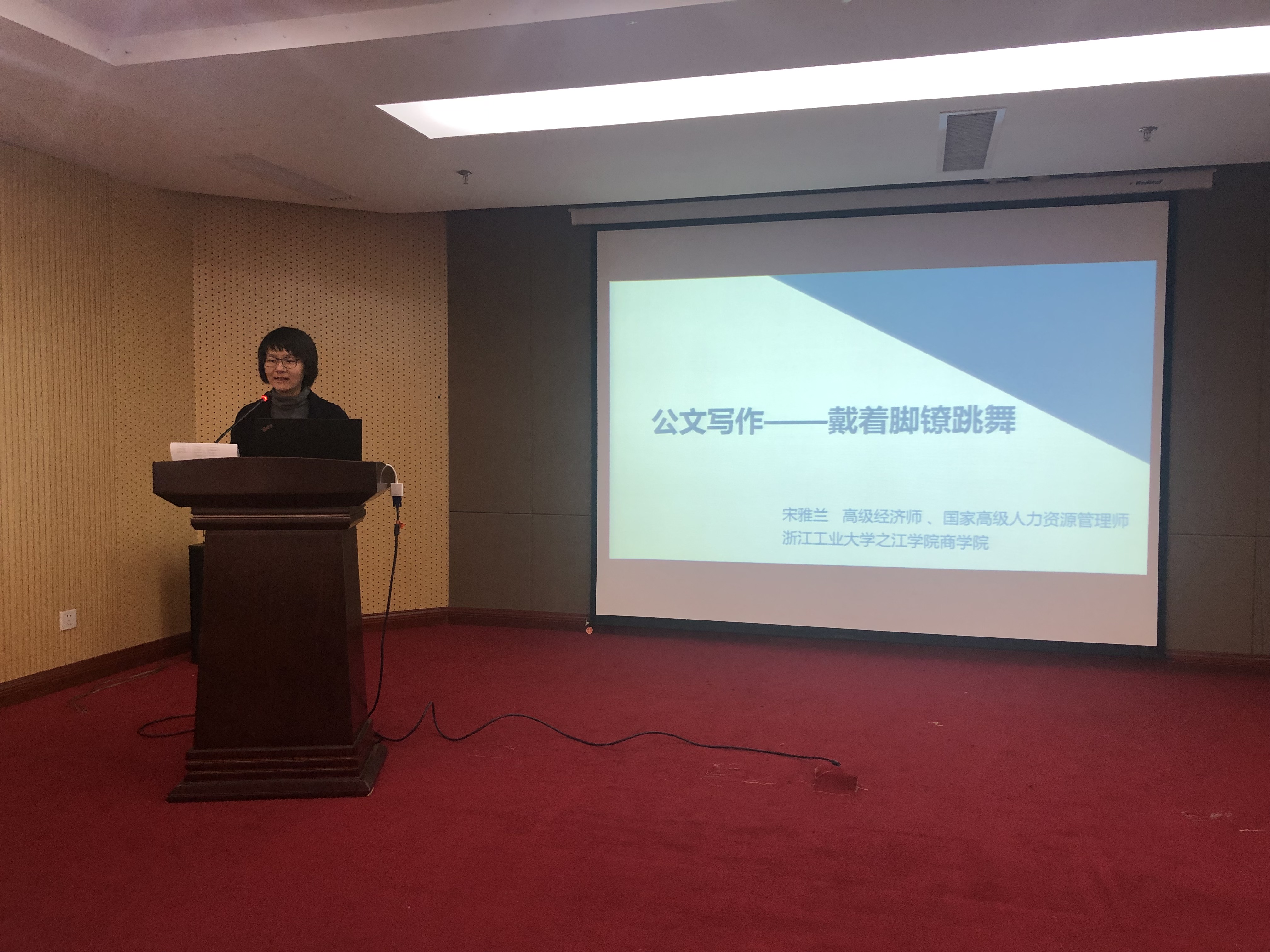 本次培訓(xùn),邀請(qǐng)浙江工業(yè)大學(xué)之江學(xué)院宋雅蘭老師進(jìn)行授課。培訓(xùn)課上,宋雅蘭老師向大家深入淺出的講述了公文寫作的基礎(chǔ)知識(shí),詳細(xì)闡述了公文的規(guī)范格式,著重為大家講述了決定、通知、公告、報(bào)告、請(qǐng)示等公文的寫作方法,并逐個(gè)舉例說明,生動(dòng)形象。通過培訓(xùn),大家收獲頗豐,對(duì)公文寫作有了全面認(rèn)識(shí)和深刻理解,希望能把學(xué)到的知識(shí)用到工作中,增強(qiáng)公文規(guī)范意識(shí),不斷提高公文寫作水平,以更好地完成本職工作。
