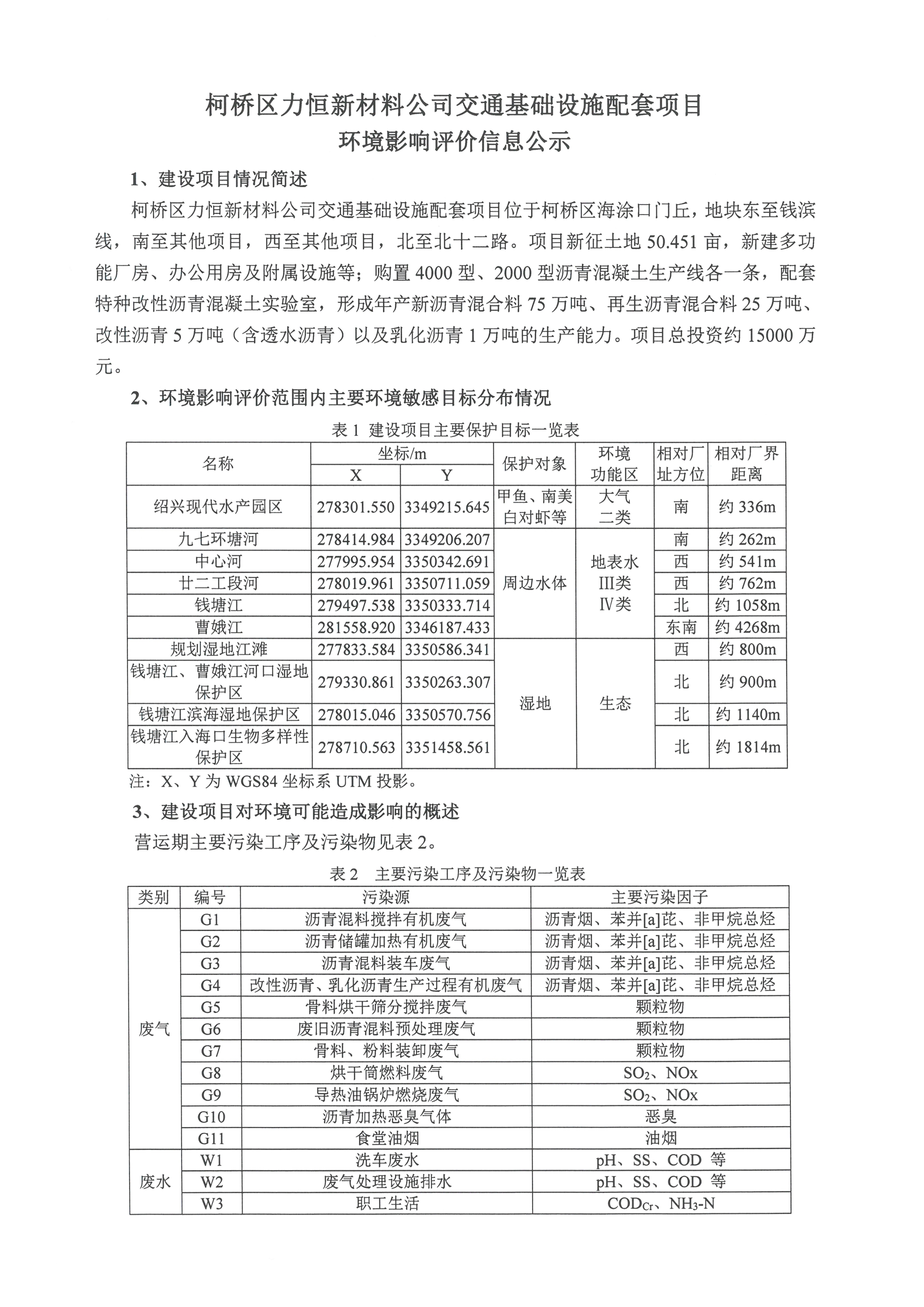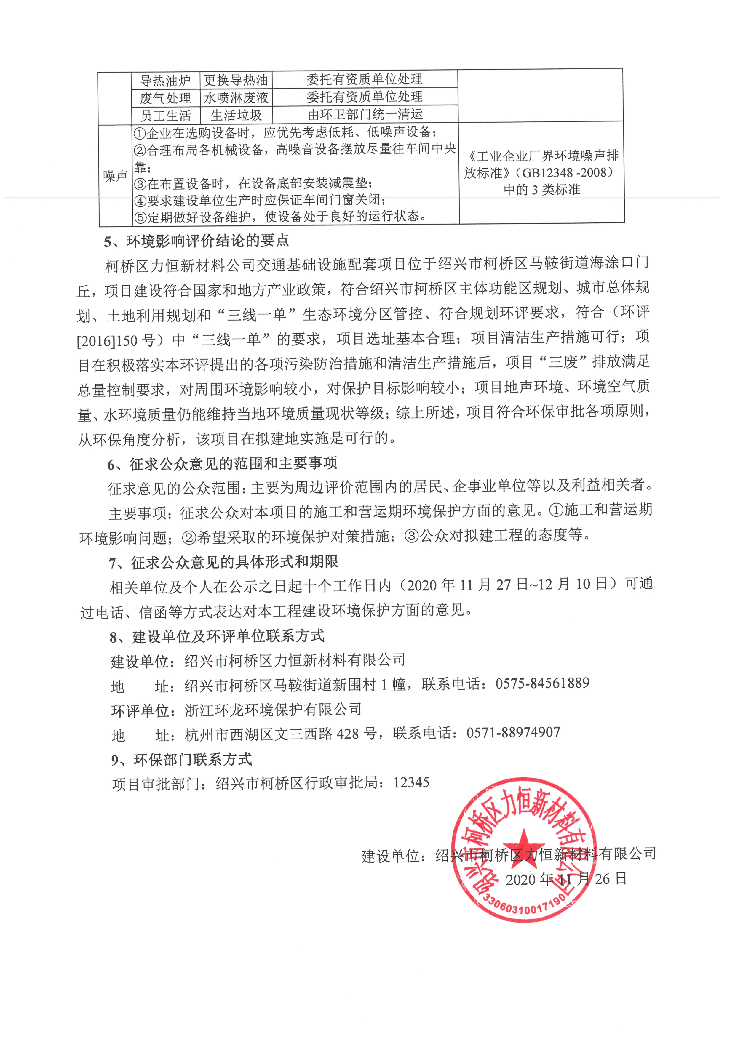 柯橋區(qū)力恒新材料公司交通基礎(chǔ)設(shè)施配套項(xiàng)目環(huán)境影響評(píng)價(jià)信息公示
