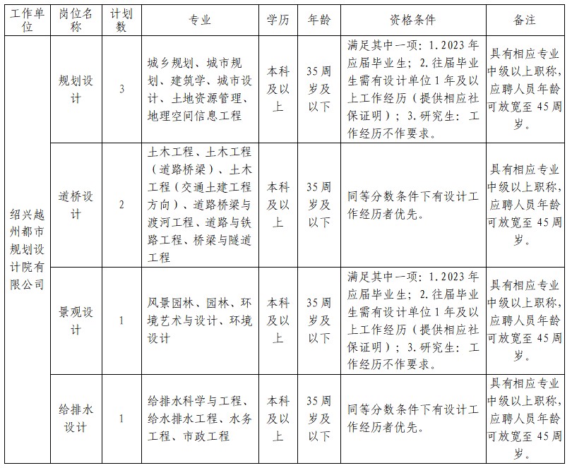 紹興越州都市規(guī)劃設計院有限公司派遣制人員招聘公告