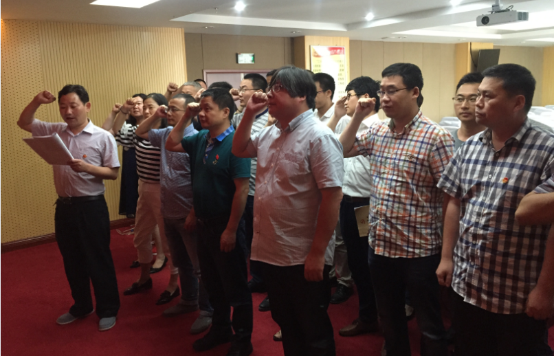 一、重溫誓詞不忘初心。全體黨員集中在黨員活動室,面對鮮紅的黨旗,進行莊嚴宣誓,踐行先鋒模范。